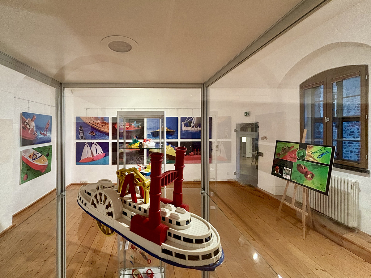 Vom Niederrhein hat es unsere Ausstellung direkt ans Ufer der Elbe geführt. Mühlberg ist eine wunderbare kleine Stadt, abseits der großen Metropolen und vom Krieg verschohnt, scheint die Zeit stehengeblieben. Das Museum Mühlber 1547 ist Teil einer mittelalterlichen Klosteranlage. Hier fand sich ein Raum, um die Welt der Spielzeugschiffe komprimiert als wunderbare Kabinett-Ausstellung zu präsentieren. Wir danken Museumsleiterin Martina Pöschl und Kollegin für das herzliche Willkommen und ihre tatkräftige Unterstützung.